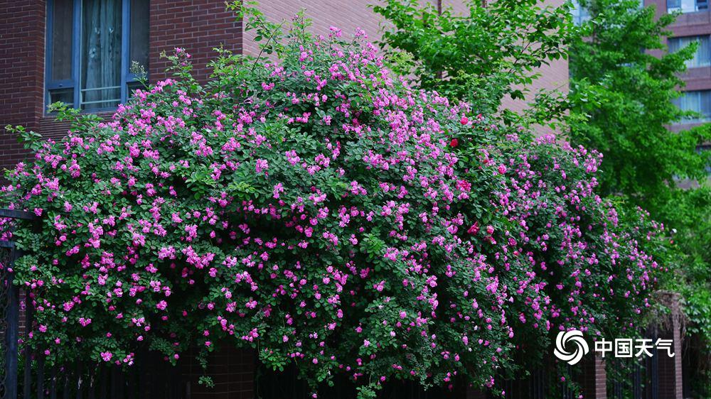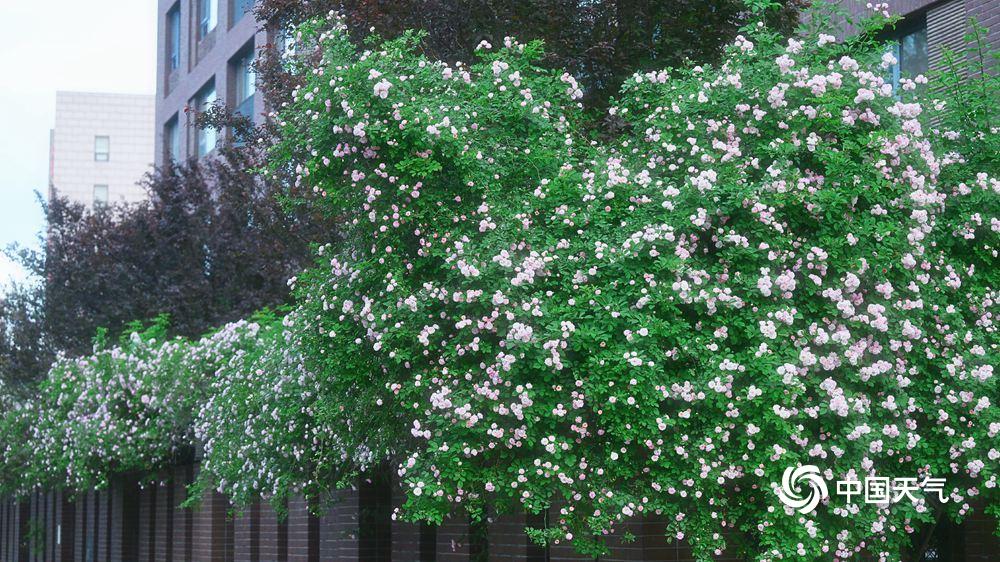 【春日浪漫 蔷薇花开】据中国天气网4月30日讯 近日,北京蔷薇花开,淡粉、玫红色的花朵一团团、一簇簇的爬满墙壁,带来春日无限浪漫。图片拍摄于4月30日。