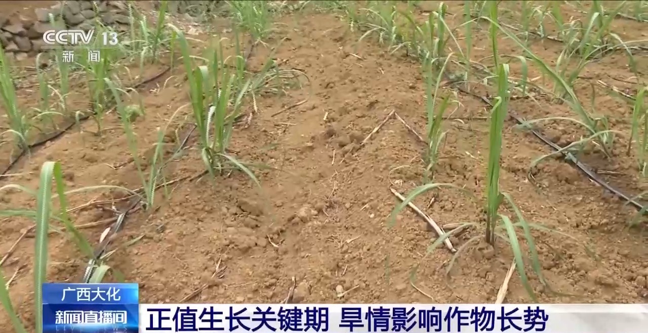 在一片90多亩的甘蔗地,往年4月中下旬,这里已经是绿油油的一片。但是今年受旱情影响,甘蔗长势严重不足,往年此时甘蔗应该有一米多,但现在甘蔗只有30厘米高。而此时正是甘蔗分蘖期,也就是主茎在由低向高生长的关键时刻,缺乏必要的水分,土壤中的养分难以被作物吸收,直接影响甘蔗的生长周期。 大化县一季度种植玉米18.98万亩,受灾面积达10.31万亩,占种植面积的一半以上。 原文链接:https://content-static.cctvnews.cctv.com/snow-book/index.html?item_id=4362662579720928638&channelId=1119&toc_style_id=feeds_default&share_to=wechat&track_id=5701da6d-790b-403e-bf9d-457a6dcf6328 广西遭遇“百年一遇”干旱“中国糖都”崇左喊“渴” 据千龙网4月21日讯 近半年,广西没下过一场像样的雨。尽管有时也会阴云密布,或狂风呼啸,但送来的雨水格外稀薄,只能润湿地表,再往下翻,土干燥又松散。 最近,气温一天天升高,鱼塘干了,地被烤出裂痕,作物苗叶也变得蜷曲枯黄,甚至不再长高。 甘蔗是广西最常见的农作物。过去一年,这里的粮食播种面积共有2841.8千公顷,甘蔗占30%。广西崇左是中国最大的甘蔗种植地,种植面积每年稳定在400万亩以上,人均蔗糖产量曾连续14年居全国第一,因此崇左也被誉为“中国糖都”。 在崇左人看来,种植这样的作物并不困难,只需要每年年初播种,等它经历萌芽期、幼苗期、分蘖期、伸长期和成熟期,大概10至12个月,就可以收获粗壮的成品。甚至不用特意浇水——在这样一处亚热带湿润季风气候地带,光靠自然降雨,就足够提供甘蔗生长所需的全部水分。 但在今年年初,依靠自然的模式失效了。 林茂生在崇左市宁明县那堪镇拥有二三十亩甘蔗地。以前,他的父亲种甘蔗,他也跟着种,50多年过去,偶尔会经历两三个月不下雨的情况,但还从没遇到过今年这样长时间的干旱。 “百年一遇的干旱。”广西甘蔗学会理事长、广西农业科学院甘蔗研究所所长吴建明这样形容今年严峻的形势。他告诉记者,从2024年9月至今,当地的降雨都是毛毛雨,土地湿不透,雨水甚至还不够地表吸收,更难抵达地下,带来的后果是甘蔗种下去后不出苗,或者出苗很少。 据了解,当下正是甘蔗播种出苗、宿根蔗发株及幼苗生长期。宿根蔗是宿根甘蔗的简称,指上季甘蔗收获后留在地下的蔗蔸在适宜的环境条件下萌芽出土,长成蔗株。 如今,由于土壤太干,部分地下低位芽无法萌发出土。往年此刻,这些甘蔗可以长到半米高。但现在,即便是那些侥幸钻出土地的幼苗,也因为缺水生长缓慢,叶片干枯、发黄,耷拉着。 人们的生意也蔫儿了。黄神梅已经在这片甘蔗地里投了50万元,她本来想着,即使第一年没有利润,也能留下宿根,第二年用,省下买苗根的费用和人工播种费。 但这场旱情让一切都成了未知。 有经验的农户很早就觉察到异样,宁愿空着不种,也不愿意花了钱,却不出苗。 从三月份开始,河水水位下降了一米多,有些池塘水已抽干。 原文链接:https://baijiahao.baidu.com/s?id=1829949298646892019