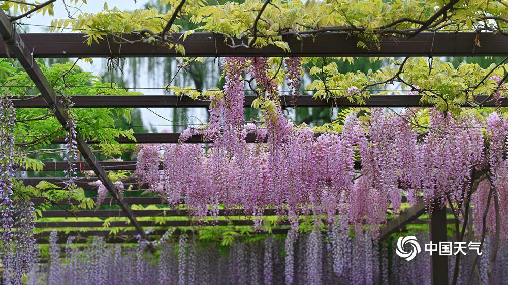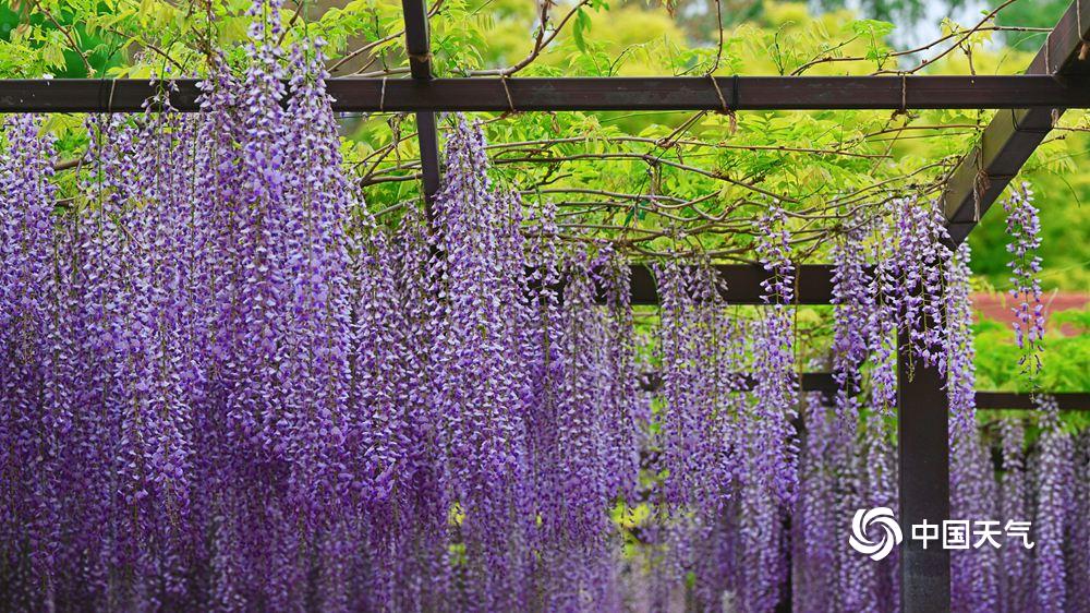 【紫藤花如流苏低垂】据中国天气网4月21日讯 4月21日,北京玉渊潭内,紫藤花开正盛,一串串如流苏低垂,浪漫得让人沉醉。