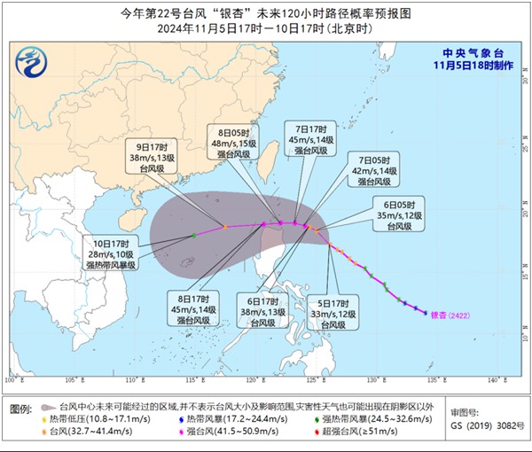 今年第22号台风“银杏”已加强为强台风级