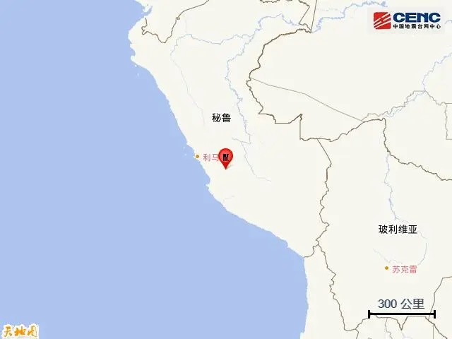 据中国地震台网正式测定 北京时间11月6日3时39分(当地时间11月5日14时39分)在秘鲁发生5.7级地震,震源深度70千米,震中位于南纬12.90度,西经75.20度。