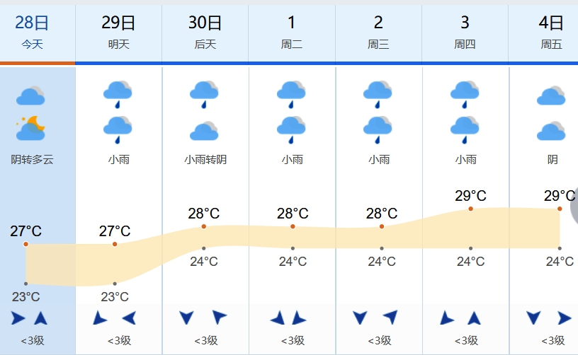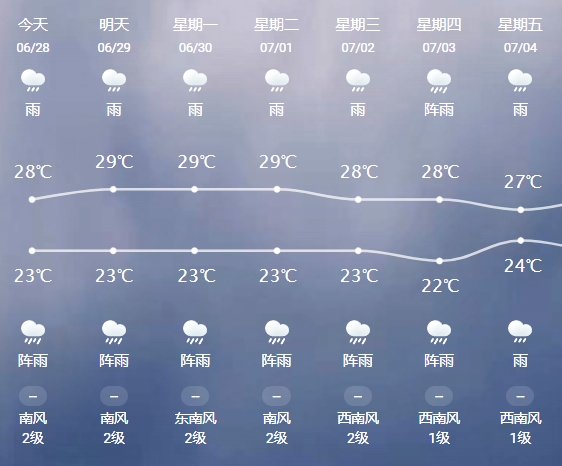 五、中国10天(6月27日12时~7月6日12时)天气:华北东北地区等地多降雨,江淮江南等地有大范围高温天气