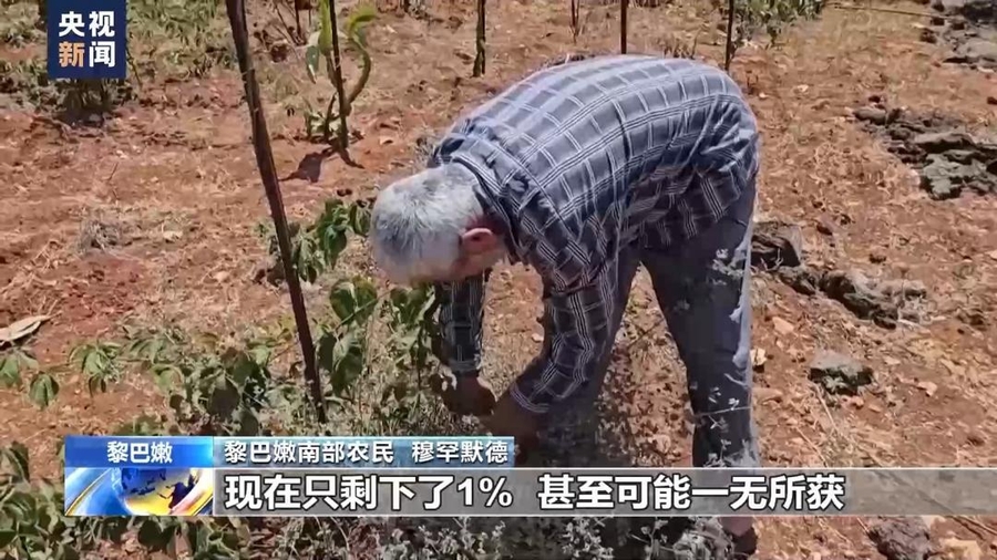 黎巴嫩南部农民穆罕默德:可以说,由于黎巴嫩南部的战火,这片区域的百里香收成现在只剩下了1%,甚至可能一无所获。由于轰炸和当地人的流离失所,这里的收成已经没有了。