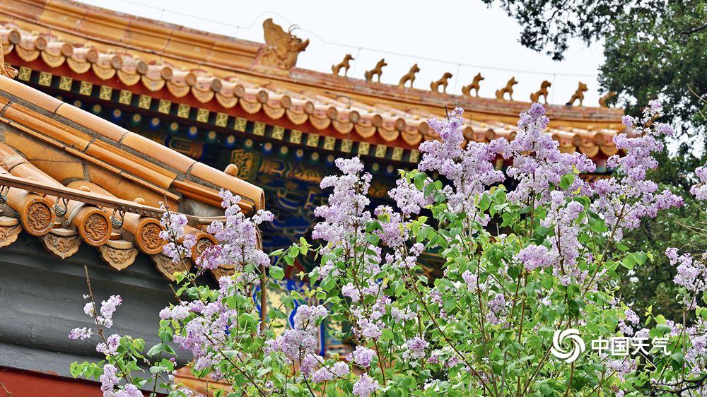 【丁香拂古壁 典雅韵无穷】据中国天气网4月8日讯 近日,北京丁香花迎来盛花期,紫白相间的花簇缀满枝头,当与古建筑相映,更显典雅动人,如诗如画。图片拍摄于4月8日。