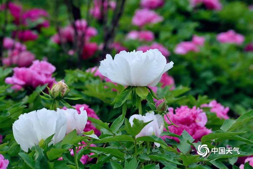 【牡丹映翠园 国色醉春情】据中国天气网4月8日讯 4月8日,河南汝州市区中央公园内的牡丹花鲜艳绽放,红似火、粉似霞、白似雪……姹紫嫣红,微风吹过,清香扑鼻。