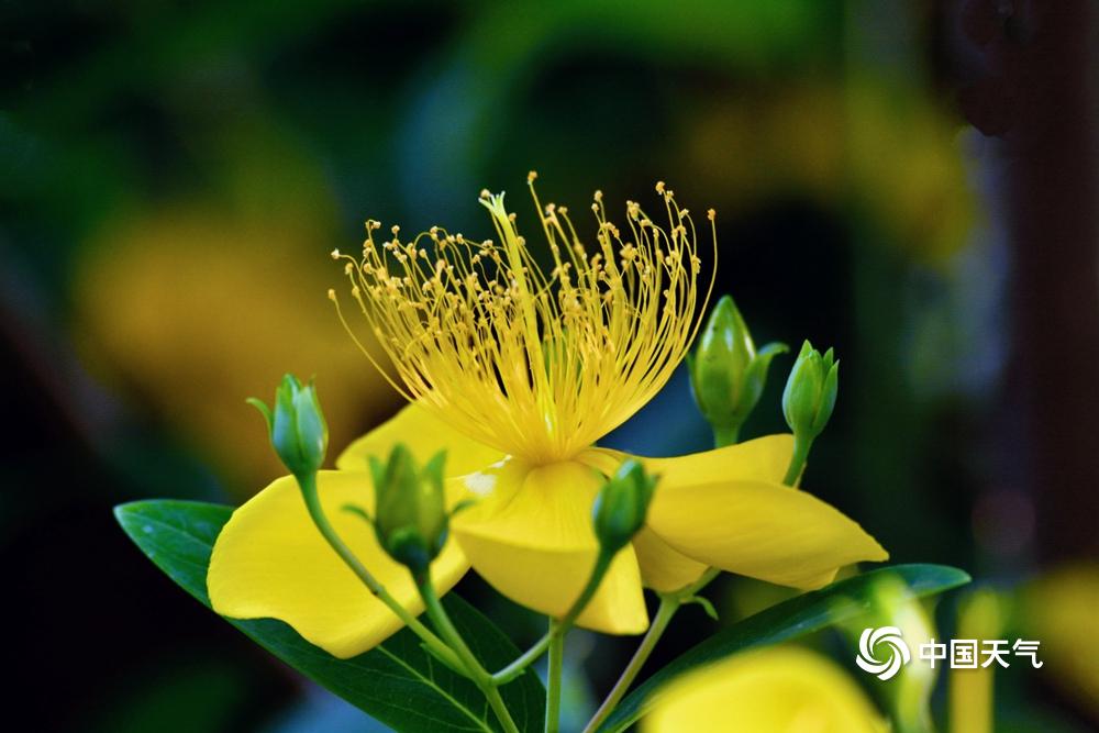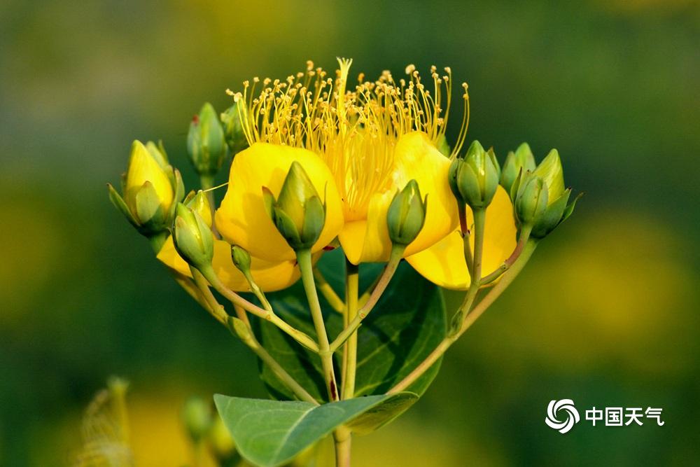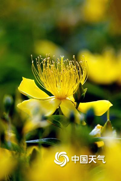 【金丝桃绚烂绽放 花蕊如丝花瓣金黄】据中国天气网5月25日讯 初夏时节,河南平顶山市区一处公园内的金丝桃绚烂绽放,阳光下,金色花瓣熠熠生辉,花蕊如金丝般纤长舒展,散发出迷人的芬芳。