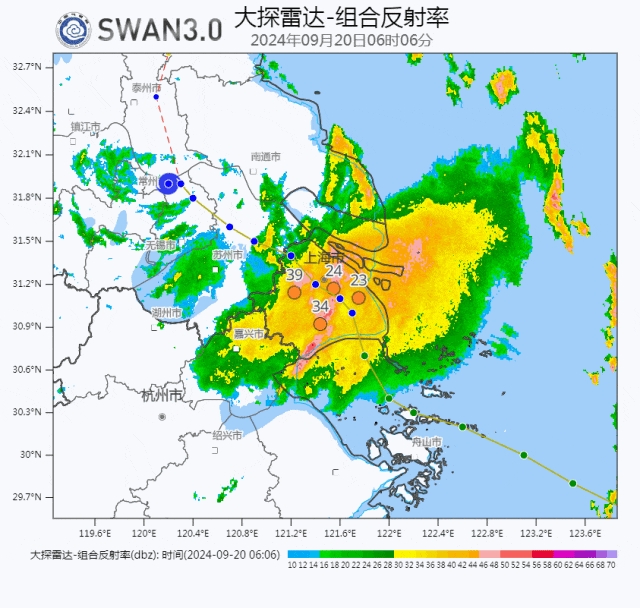 据新民晚报9月20日讯 今晨,台风“普拉桑”中心移入江苏江阴境内,已减弱为热带风暴,但上海仍处在风暴右后侧,遭遇“列车效应”,海上水汽源源不断汇聚,降水持续,累计雨量达暴雨,东部和南部地区累计雨量达大暴雨。