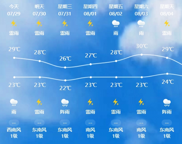 五、中国10天(7月28日12时~8月6日12时)天气:东北华南西部西南地区多降雨,西北及长江中下游多高温天气