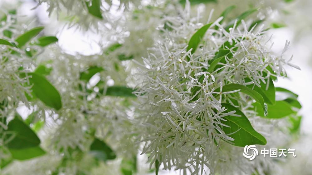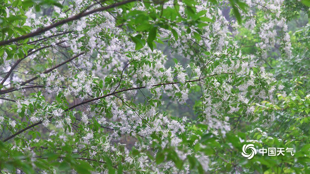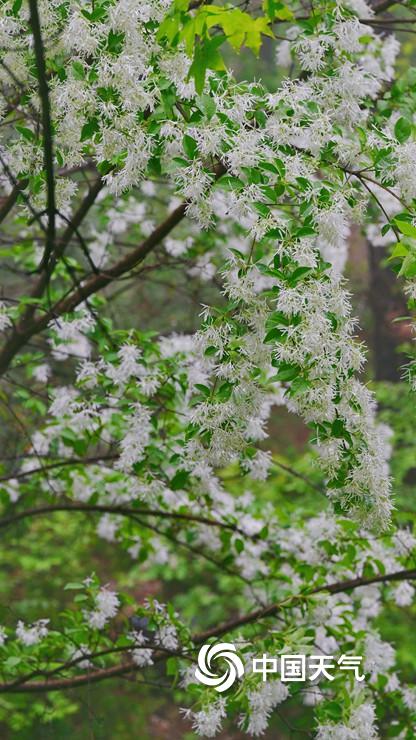 【清新雅致流苏花开】据中国天气网4月22日讯 近日,北京奥林匹克森林公园内,流苏树花开如雪,绿叶掩映下,更显清新雅致。图片拍摄于4月22日。