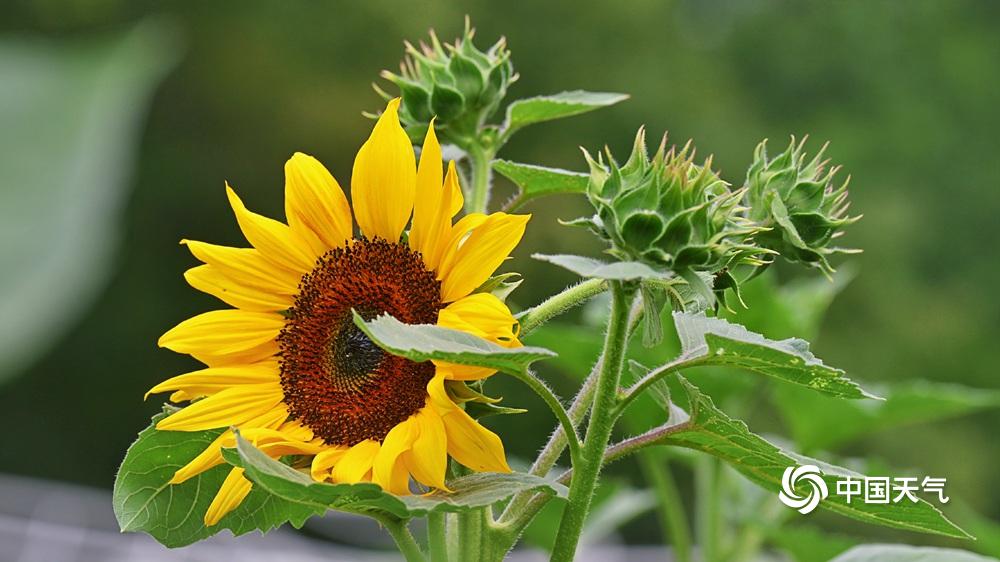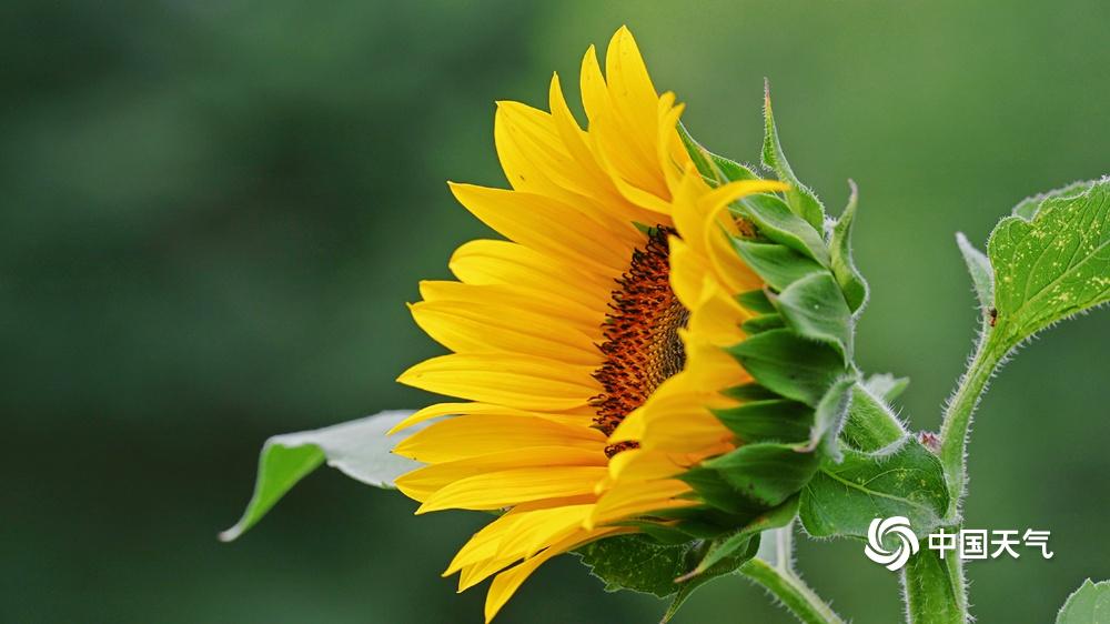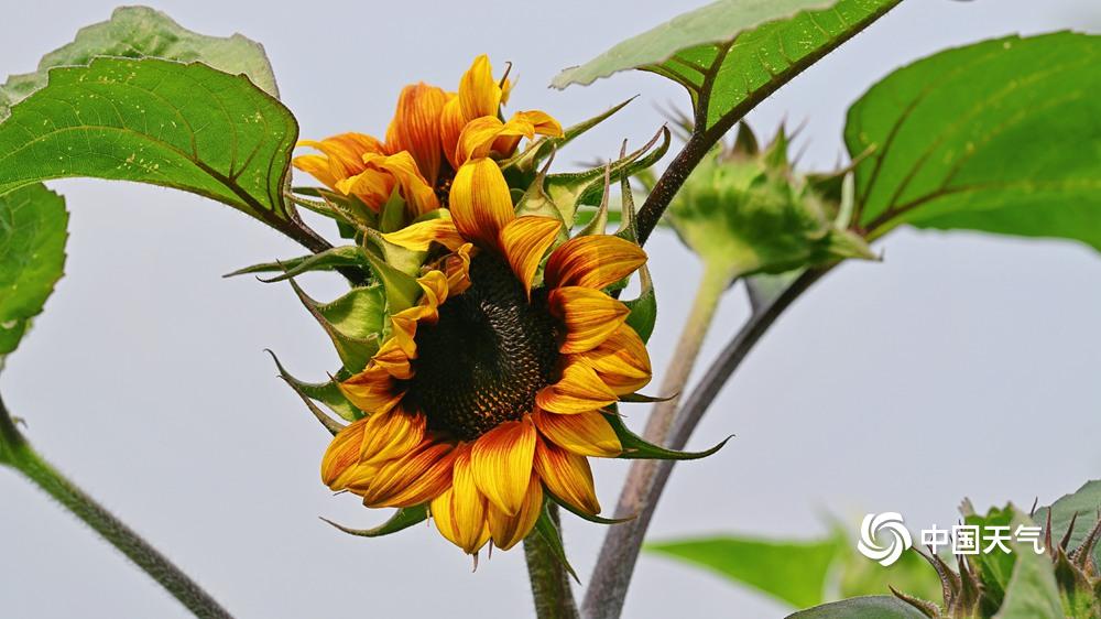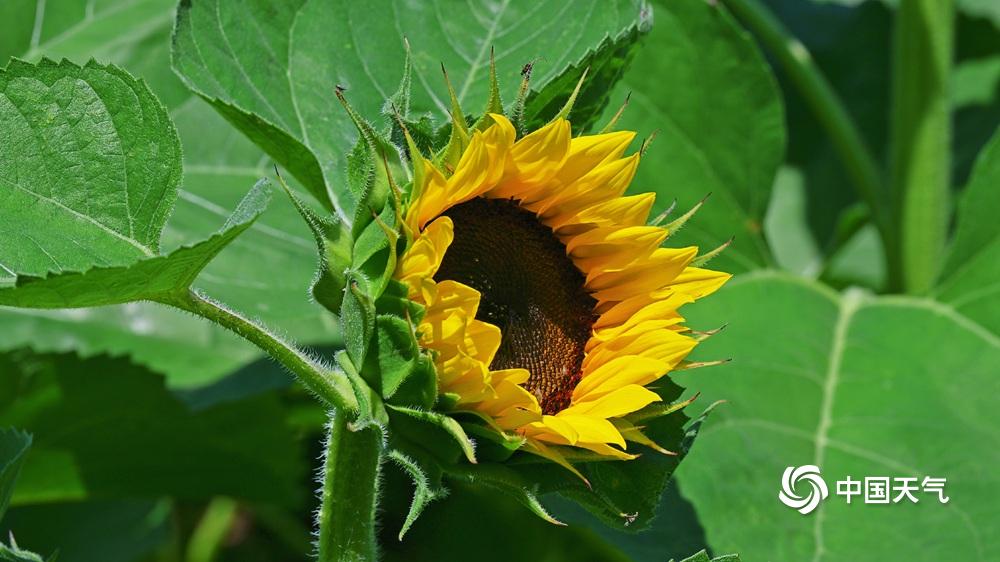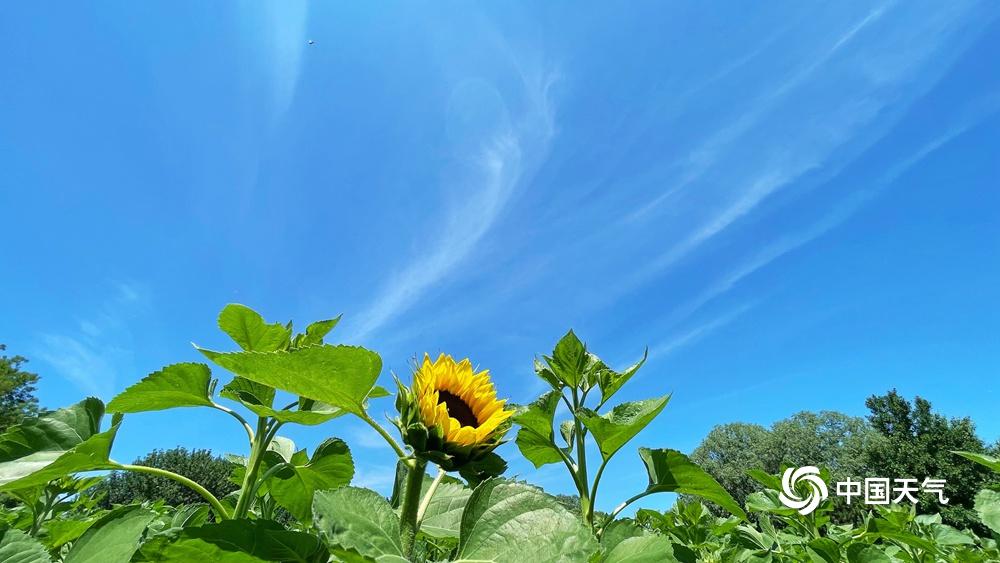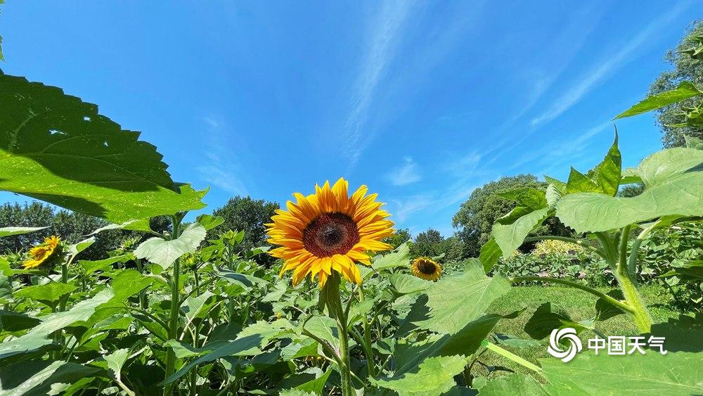 【向日葵花开灿烂】据中国天气网6月20日讯 今天(6月20日)北京热意升级,天空湛蓝,阳光炙热。向日葵向阳而生,花开灿烂,与蓝天相映格外美丽。