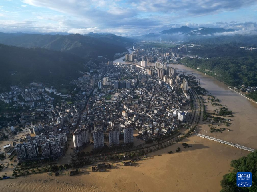 洪水中的榕江县城(6月28日摄,无人机照片)。