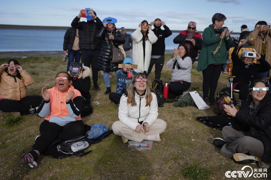 当地时间10月2日,阿根廷,人们观测日环食。