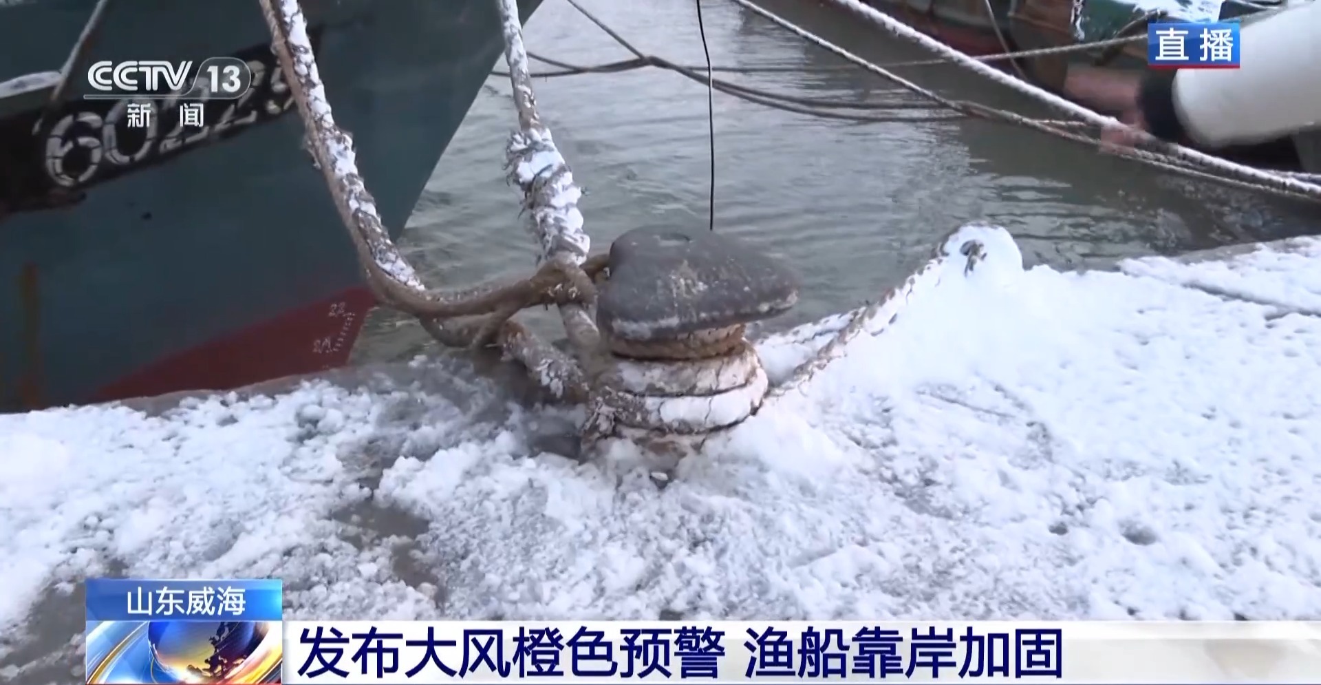 据央视新闻客户端11月27日讯 受寒潮影响,山东多地出现大风降雪天气,部分海域出现3米以上大浪。山东威海在外作业的9000多艘渔船紧急回港避风。 山东威海环翠区远遥渔港码头的风力特别大,一度达到了11级。从24日开始,威海就陆续发布了大风预警,26日升级为大风橙色预警,目前已经有9000多艘渔船回港避风。 面对恶劣的大风天气,渔船采用了跟以往不同的固定方式。缆桩上的缆绳比往常多加了一倍,稳定固定渔船,一些较远处的渔船还使用了抛绳锚,进一步固定。 从昨晚开始,威海陆续出现了降雪,渔港码头清雪除冰工作正在进行。 原文链接:https://content-static.cctvnews.cctv.com/snow-book/index.html?item_id=14947385069104585090&toc_style_id=feeds_default&share_to=wechat&track_id=b0f58f88-e0fb-415b-a695-61df1e75809f