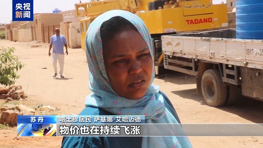 喀土穆居民萨基娜·艾哈迈德:缺粮缺水,我们正在陷入绝境。物价也在持续飞涨,过去价格1000苏丹镑的商品,现在需要1万苏丹镑。