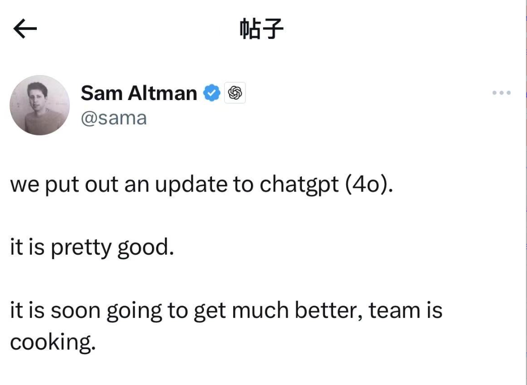 OpenAI首席执行官Sam Altman宣布GPT 4o升智