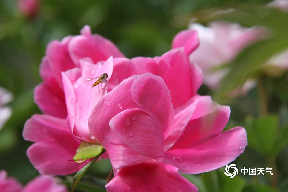 【雨后芍药粉嫩娇艳 仙气十足】据中国天气网5月15日讯 今天(5月15日)早晨,山东威海降雨过后,花园里的芍药粉嫩娇艳,仙气十足。