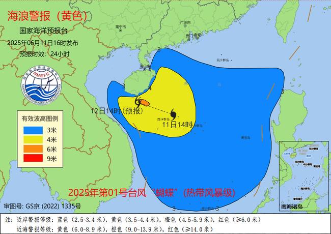 预计“蝴蝶”将于13日在海南岛南部到广东西部一带沿海登陆。