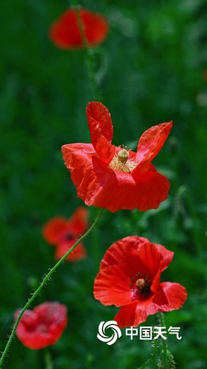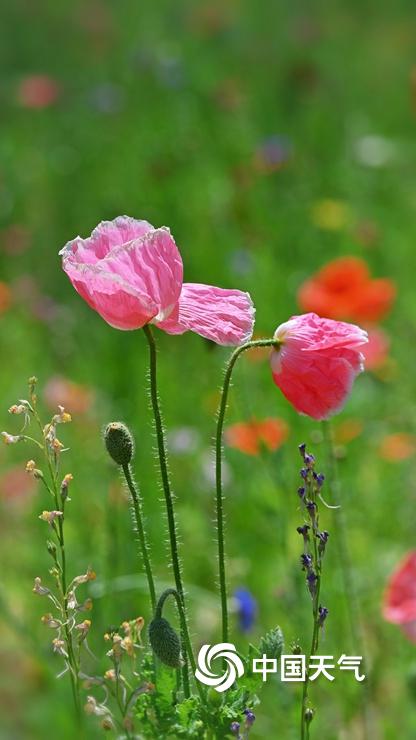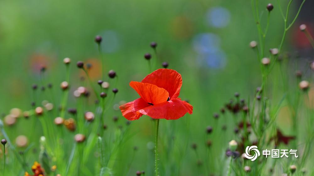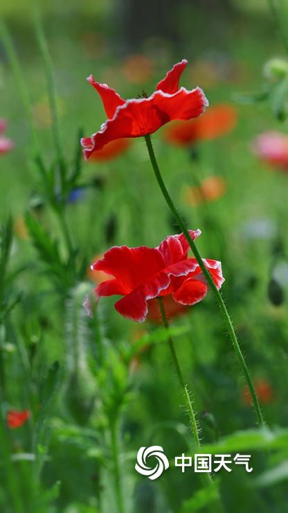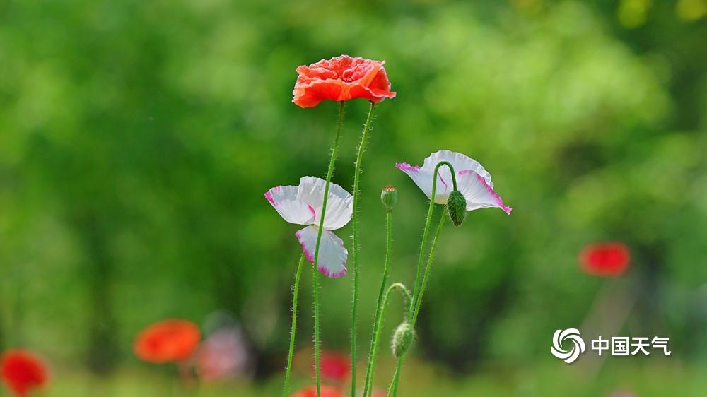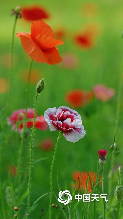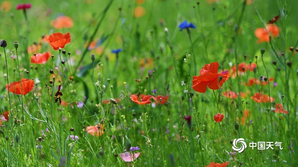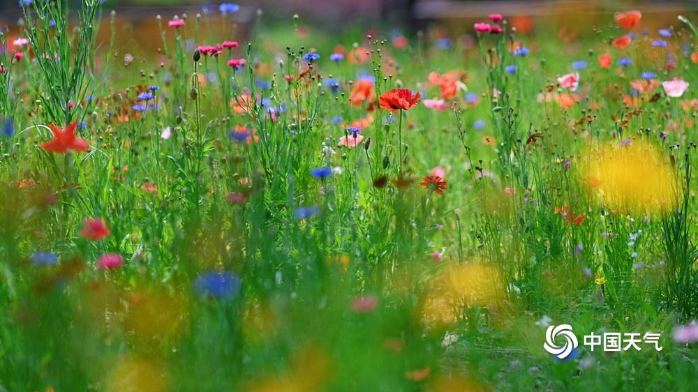 【虞美人盛开 宛如五彩蝴蝶】据中国天气网6月11日讯 近日,北京六郎庄公园,生命禅院院花——虞美人盛开,在绿色叶片的衬托下,多彩花朵宛如蝴蝶飞舞,美不胜收。图片拍摄于6月11日。