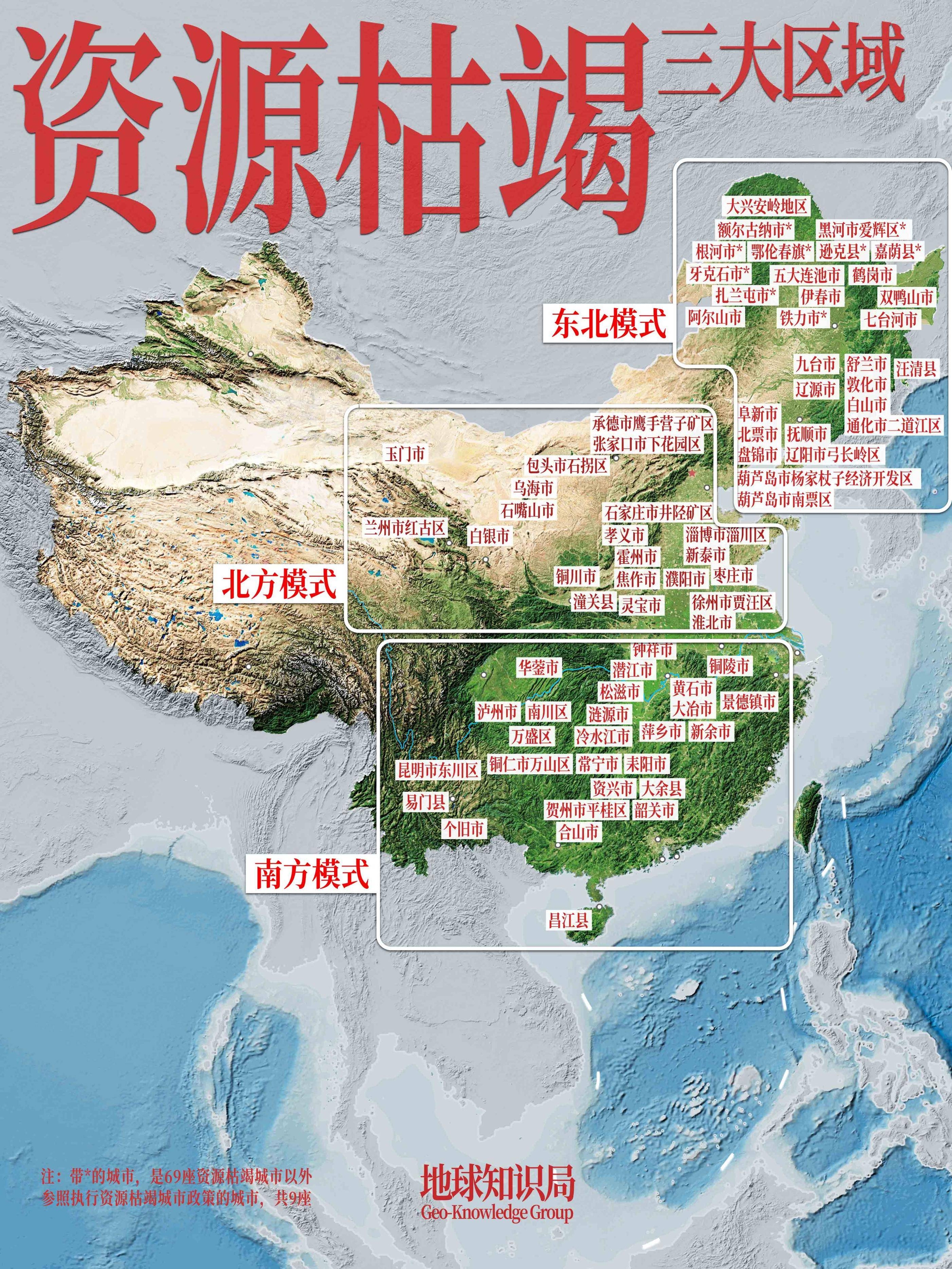 首先,枯竭的前提是要先有资源,这69座枯竭城市遍布23个省份,资源禀赋各不相同,赶上的风口和吞下的苦果,也都有鲜明的地域特征。可将其大致分为东北模式、北方模式和南方模式。