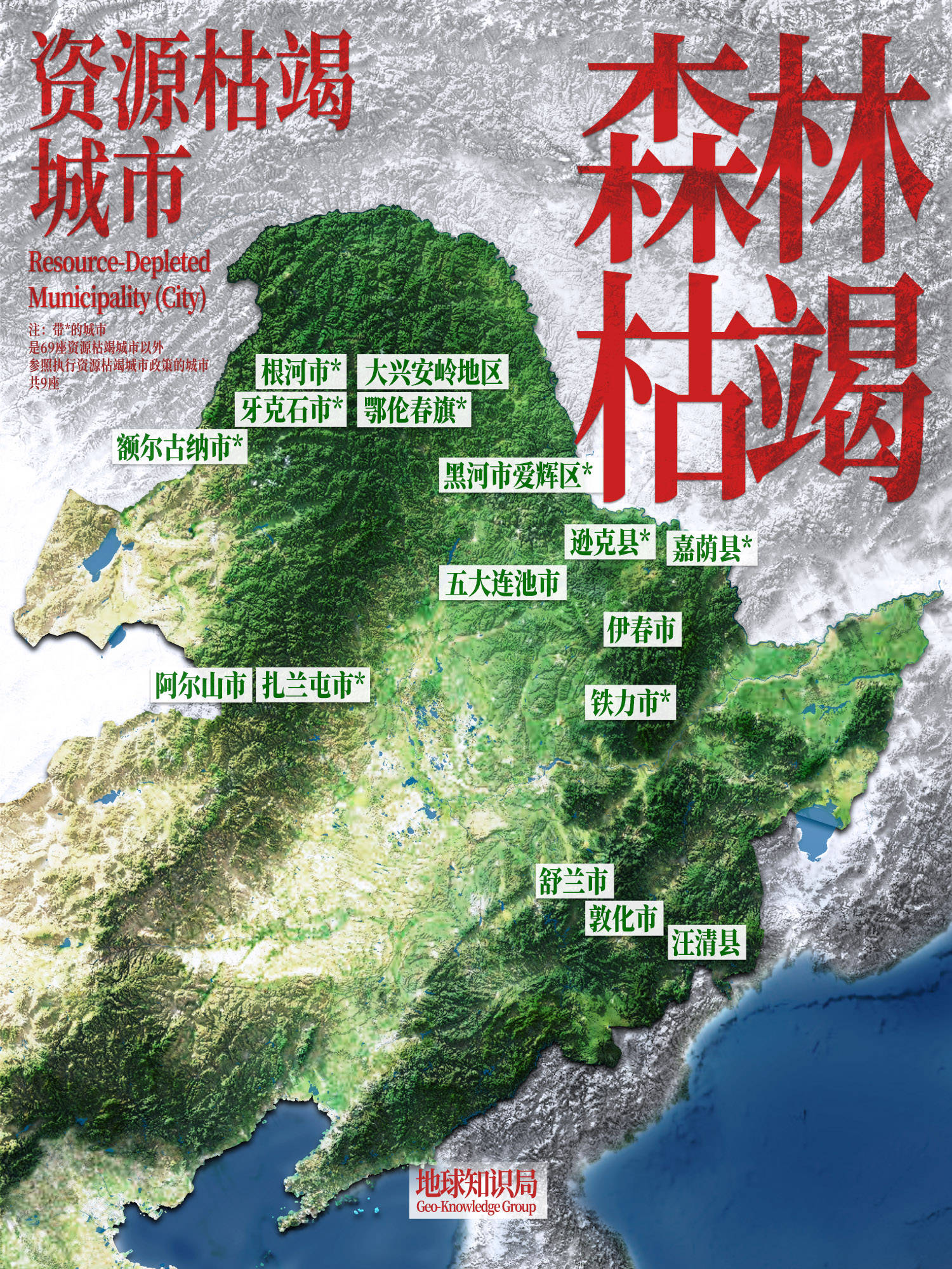 其实不论是煤田还是油田,都是不可再生资源,油尽灯枯只是时间问题。但树就不一样了,以伊春为代表的森林枯竭城市,只要细水长流,是可以把资源重新养起来的。 深处小兴安岭的“林都”伊春,在资源消耗的巅峰期,曾用千分之三的中国陆地面积(0.34%),输出了1/5的木材,从建国至今累计高达2.7亿立方米。如果架一座桥,可以从地球铺到火星。 虽然森林是可再生资源,可如果只砍不种,原始森林很快就会变成只有小树的次生林。再狠一点,就直接剃头变“秃山”,一下雨就水土流失。像大兴安岭这种,森林一口气向北溃退了200公里,没个几十年的封山育林根本缓不过来。 2008年,伊春和大兴安岭地区被列入第一批资源枯竭城市。2013年,伊春正式封山育林,停止采伐天然林。次年伊春的GDP直接掉了9%,财政收入暴跌17%。此后阿尔山、舒兰、敦化、五大连池等林城也纷纷步其后尘。 其实放眼全国,资源枯竭城市并非东北独有。 像两湖地区就有十个,两广地区有三个,连江苏都有一个,他们共同构成了中国城市中非常独特的“十分之一”。 从曾经的发光发热,到今天的艰难转型,大多数的资源枯竭城市,还同时上了收缩城市的名单。人口、产业也在不断逃离,注定逃不过矿竭城衰的那一天。 原文链接:https://www.sohu.com/a/908088648_440288