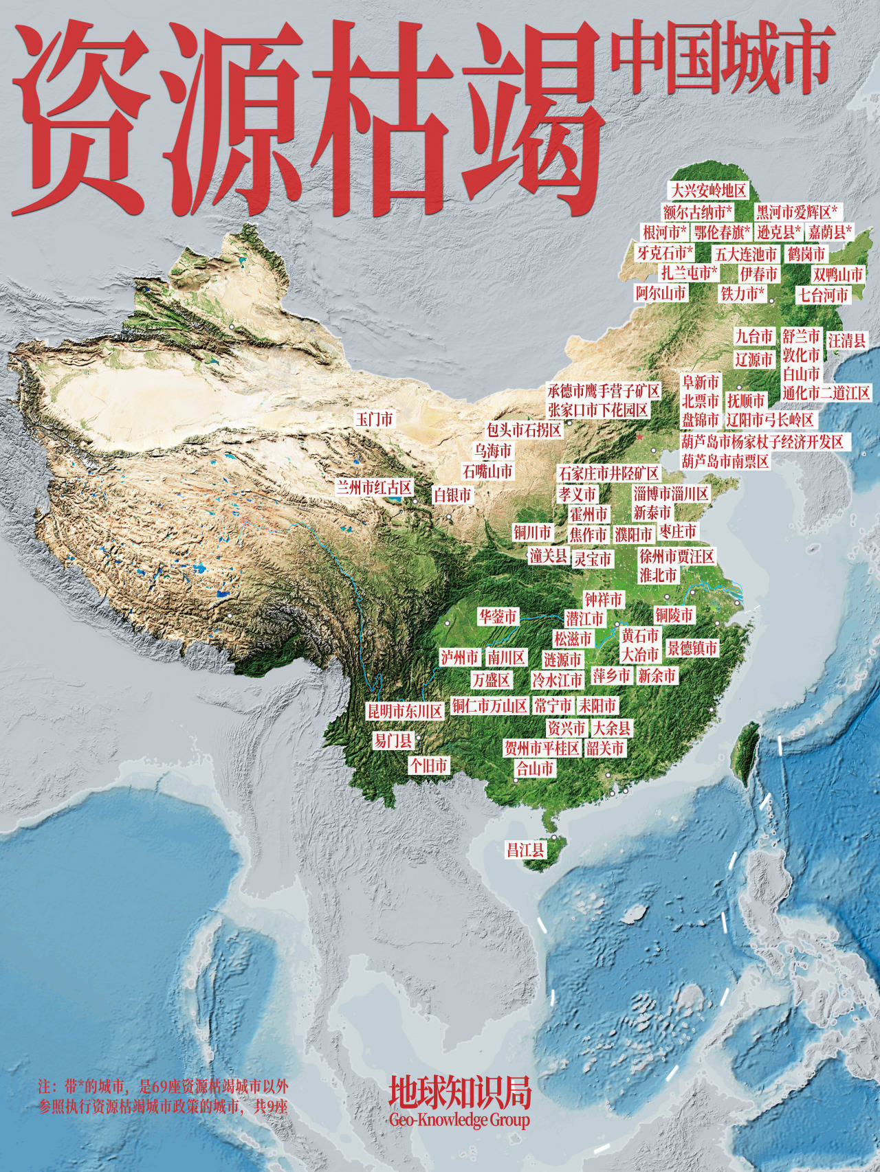 据搜狐网6月26日讯 中国版图上,69个深陷危机的告警红点。每个红点,都是一座资源枯竭城市。 中国总共有694座建制市,其中居然有近十分之一涉及到“资源枯竭城市”,遍布全国23个省区市。