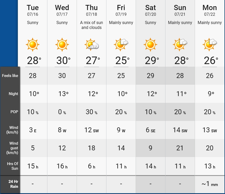五、中国10天(7月15日12时~7月24日12时)天气:四川盆地黄淮等地持续强降雨,江南华南等地持续高温