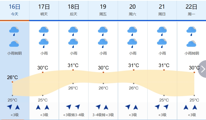 本周大部分时间,长江中下游地区至两广、重庆等地全天候闷热,夜间最低气温将多保持在25℃以上,武汉、长沙、南昌等城市最低气温将有数日超过30℃,早晚也是闷热难耐。