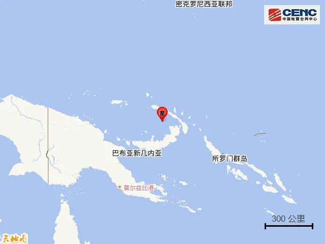 巴布亚新几内亚附近海域发生5.7级地震 震源深度10千米