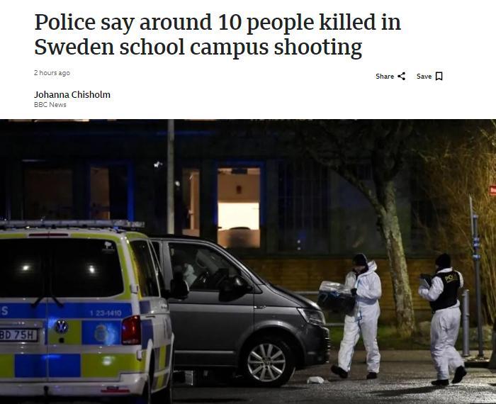 瑞典发生史上最严重大规模枪击案 校园枪击已造成11人死亡