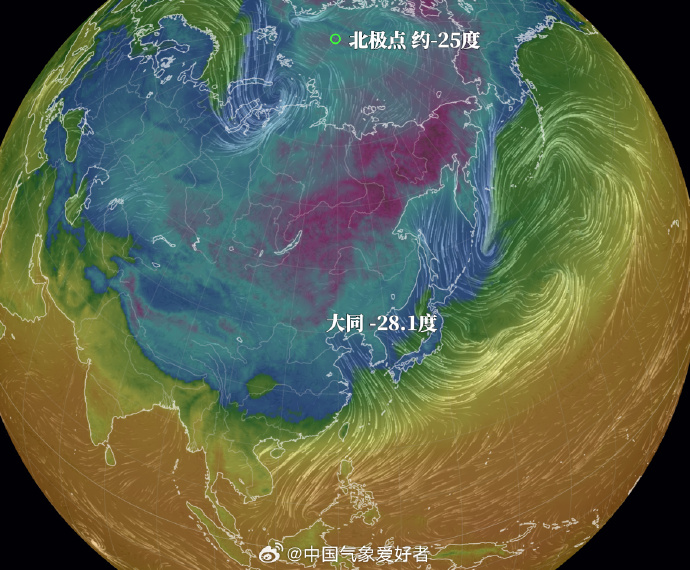 据中国气象爱好者2月8日讯 2月8日凌晨,山西大同最低-28.2摄氏度,与此同时,北极点约-25摄氏度,北极圈内,新地岛西部甚至升到了0摄氏度左右,可以说,2月8日凌晨山西大同比北极还冷。
