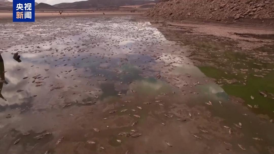 在奇瓦瓦州的布埃纳文图拉镇,拉斯拉哈斯水坝已经接近干涸,剩下的那一点点水里,到处都是死鱼。