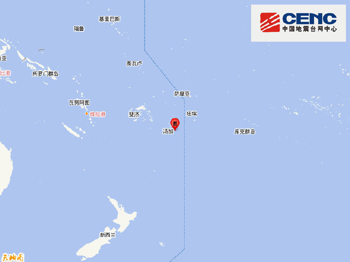 据中国地震台网正式测定 9月8日6时39分在汤加群岛(南纬21.35度,西经173.70度)发生5.9级地震,震源深度10千米。