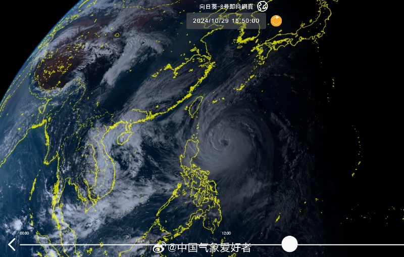 据中国气象爱好者10月29日讯 经过数日调整,今天台风“康妮”开出了一个硕大的风眼,今晚到明天就有望加强为超强台风。