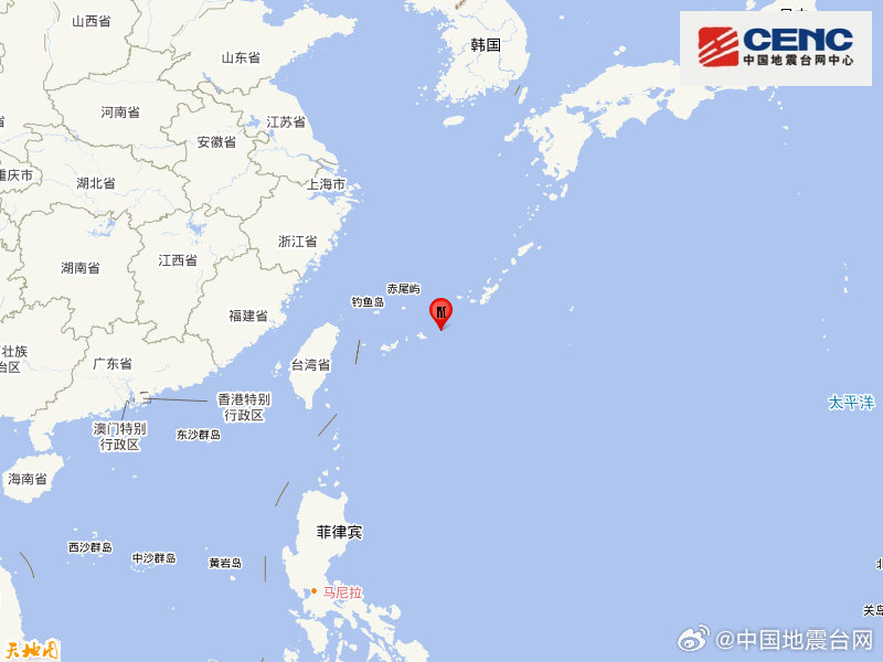 中国地震台网正式测定 11月30日16时46分,在琉球群岛西南部(北纬25.00度,东经126.10度)发生5.7级地震,震源深度40千米。