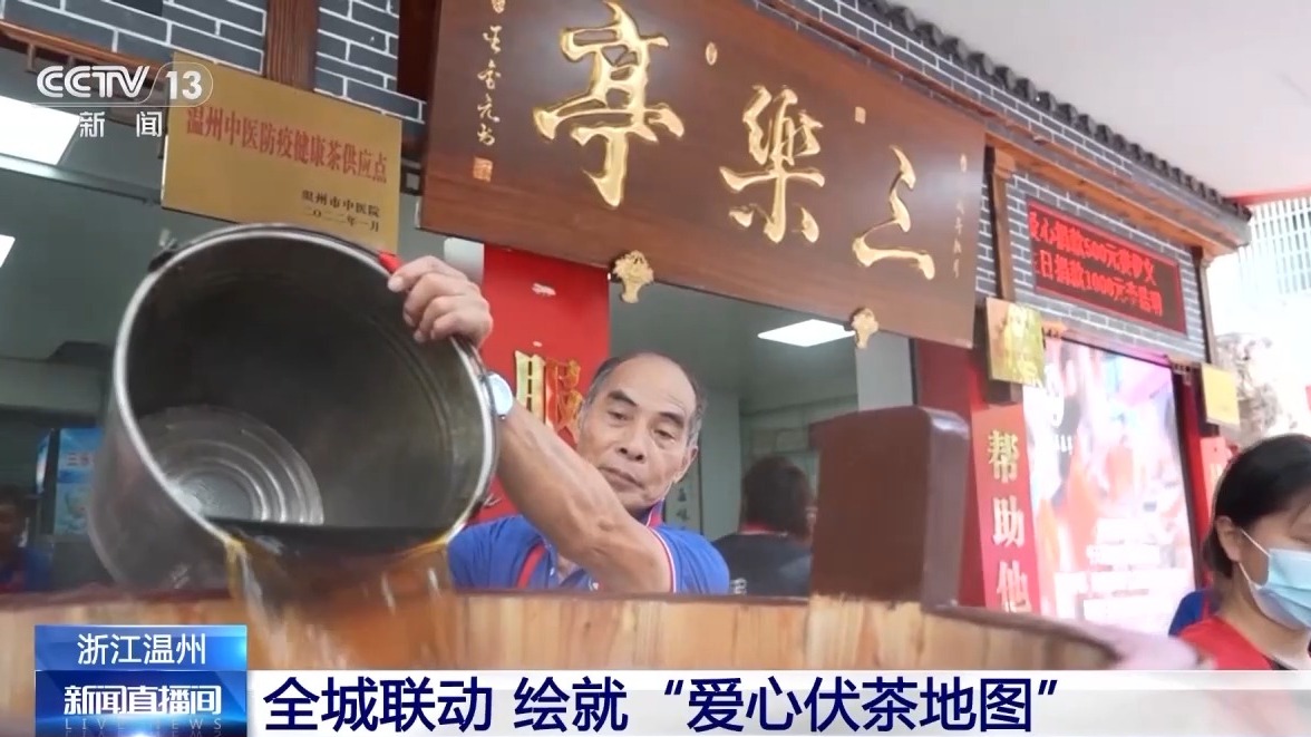 持续50多年 温州“爱心伏茶”给路人送上一杯清凉 据央视新闻客户端7月21日消息 在浙江温州,有三伏天喝伏茶的习俗,每年这个时候,全城会有大大小小3000多个伏茶点,为户外工作者等免费提供温热的伏茶。这样的传统已经持续50多年,源起一个叫“红日亭”的地方。 凌晨3点,街灯下的城市还在沉睡,但志愿者忙碌的声音已打破了街上的宁静。每天凌晨,他们在“红日亭”煮好伏茶等待大家。