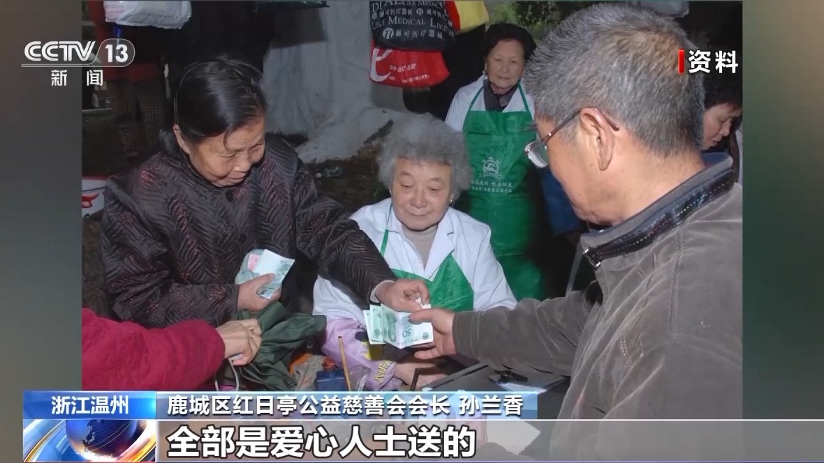 孙兰香是“红日亭”公益慈善会会长,73岁的她,已经在“红日亭”义务服务14年。她说,“红日亭”始建于1972年,一些老年人自发地免费为大家烧伏茶。每天,初升的太阳会把亭子照亮,“红日亭”因此得名。 伏茶,在温州已有百年历史,这种由数十味中草药煮成的凉茶,清凉祛暑。志愿者们每天凌晨2点左右就开始准备,现在平均每天送出去3吨至4吨伏茶。 50多年来,随着越来越多志愿者的加入,爱心善款不断汇入,公益服务内容越来越多。“红日亭”不单免费提供伏茶,还免费为需要的人发放“爱心粥”、二月二芥菜饭、清明饼、端午节粽子等,将善举变成了日常。