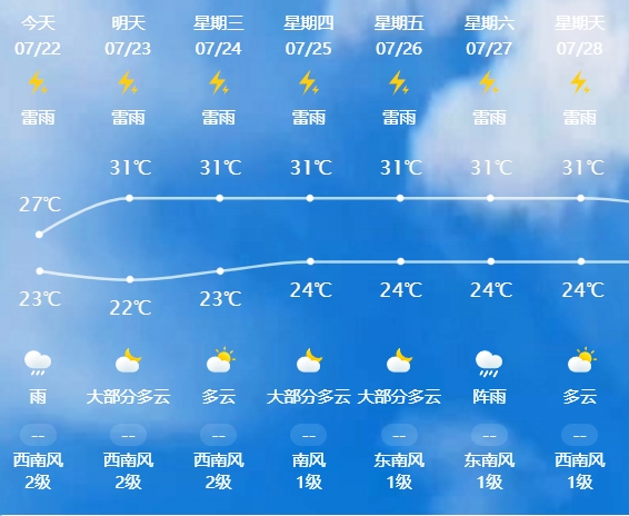 7月22日:17℃~34℃