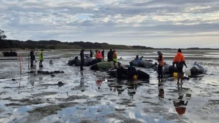 新西兰南岛海滩发现鲸鱼搁浅 7头遇难8头活着