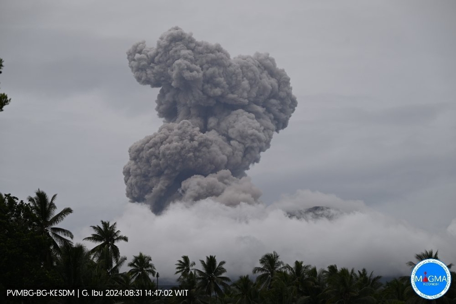 印尼伊布火山多次喷发 火山灰柱最高达1500米