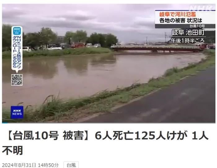 根据NHK汇总的消息,截至31日凌晨,日本全国范围内因强风、山体滑坡和大浪等死亡的人数已增至6人。