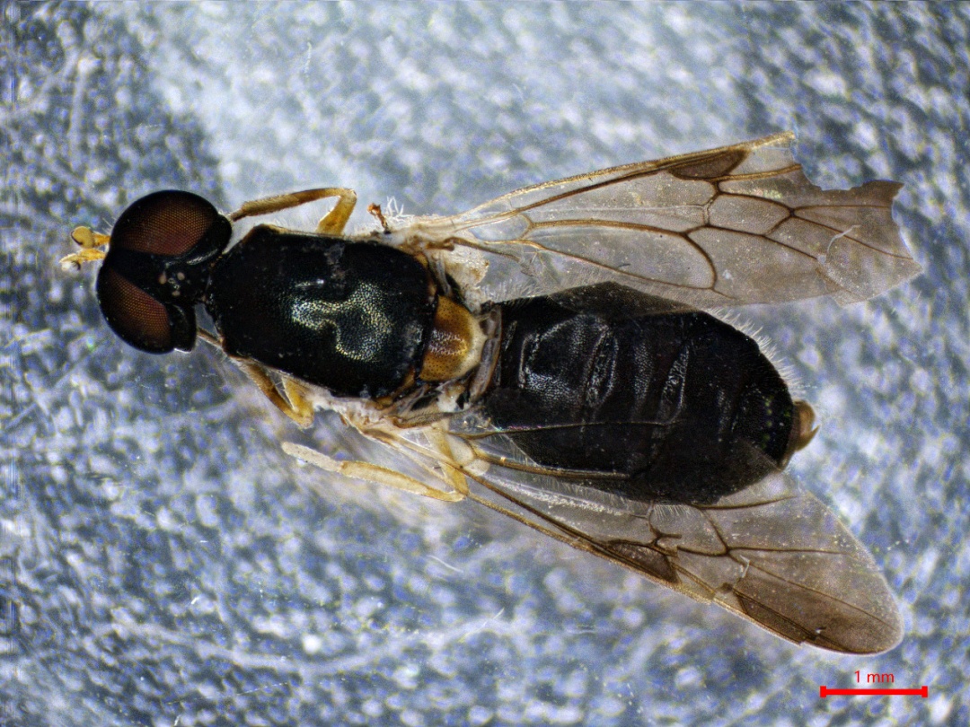 长宁出现上海新的昆虫物种 据上观新闻4月26日讯 在最近一轮长宁区生物多样性调查中,华东师范大学团队在中泾生境花园发现了一份意外收获——黄盾寡毛水虻(Evaza flaviscutellum),经确认是上海市从未记录过的昆虫物种。 黄盾寡毛水虻属于双翅目(Diptera)水虻科(Stratiomyidae)寡毛水虻属(Evaza)。这一物种最初由中国农业大学杨定教授团队于2010年发表。它们身长仅有约6毫米,只有一粒大米那么小。身体背面亮黄褐色的“小盾片”是它区别于同属相近物种的特征。此前这一物种仅被记录分布于中国西南部的贵州、云南、广西和海南。