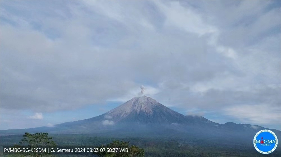 据央视网8月3日讯 据印度尼西亚火山地质研究机构消息,当地时间8月3日7时37左右,印度尼西亚塞梅鲁火山喷发,火山灰柱达700米,火山喷发持续时间为112秒。