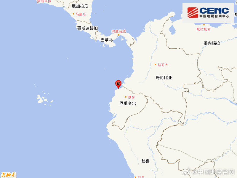 厄瓜多尔沿岸近海发生6.3级地震 震源深度20千米