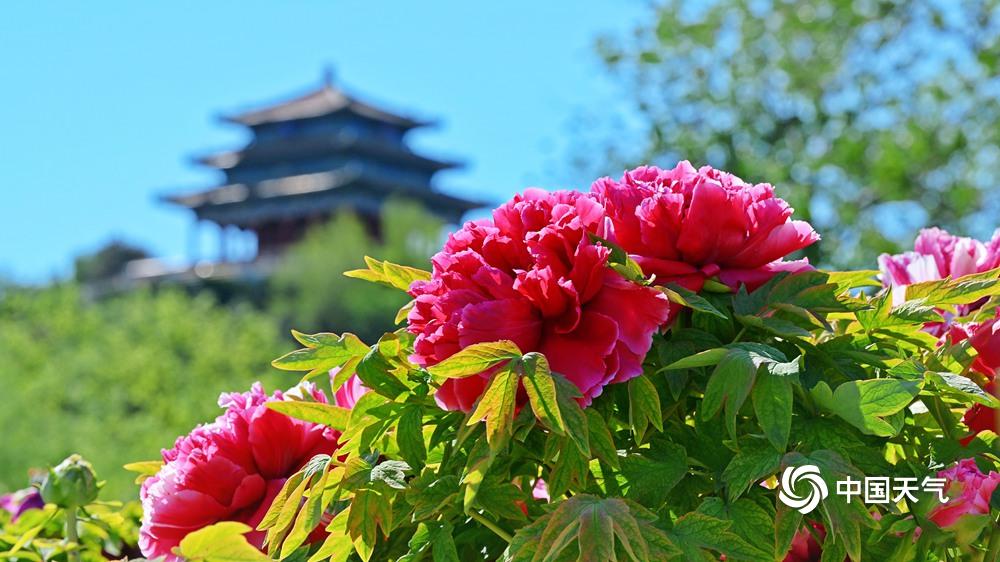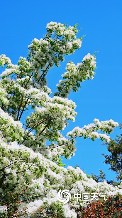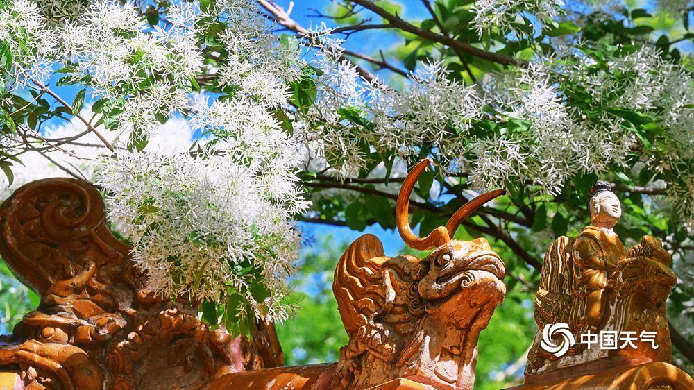 【流苏与牡丹同开 一半仙气一半华贵】据中国天气网4月24日讯 近日,北京景山公园内,牡丹花与流苏花均已开放,流苏花仙气十足、牡丹花雍容华贵,共谱春日浪漫。图片拍摄于4月24日。