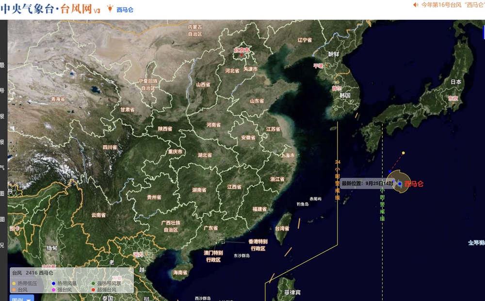 据财联社9月25日电 今年第16号台风“西马仑”(热带风暴级,英文名称:Cimaron;名字来源:菲律宾;名字意义:菲律宾的一种野牛)已于今天(25日)下午在西北太平洋洋面上生成,下午2点钟其中心位于日本鹿儿岛东南方大约500公里的洋面上,就是北纬28.1度、东经133.9度,中心附近最大风力有8级(18米/秒),中心最低气压为1002百帕,七级风圈半径80-150公里。 原文链接:https://www.cls.cn/detail/1808916