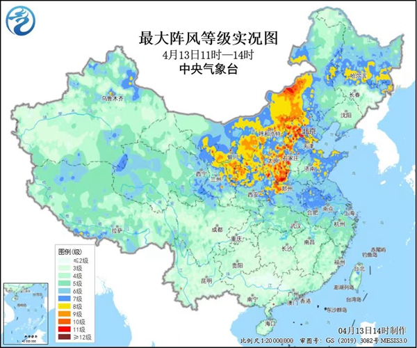 中国北方13日局地阵风达14级