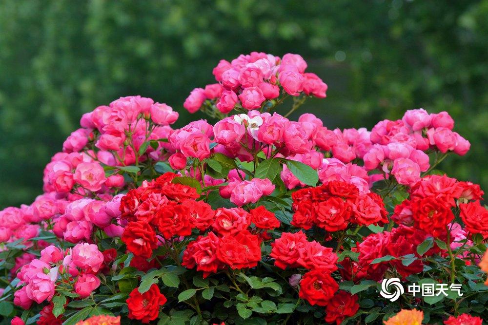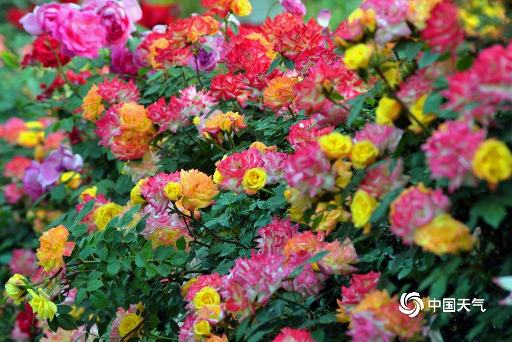 【月季花团锦簇】据中国天气网4月28日讯 4月28日,河南汝州市区月季园,月季花层层叠叠缀满枝头,红色、粉色、黄色......共同勾勒出一幅生机盎然、灵动绚丽的春日图画。