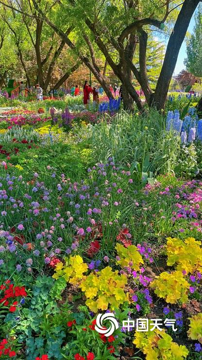 【春日花开正艳】据中国天气网4月28日讯 近日,北京海淀公园花开正艳,五颜六色的花朵仿佛是现实版的“莫奈花园”,美不胜收。图片拍摄于4月28日。